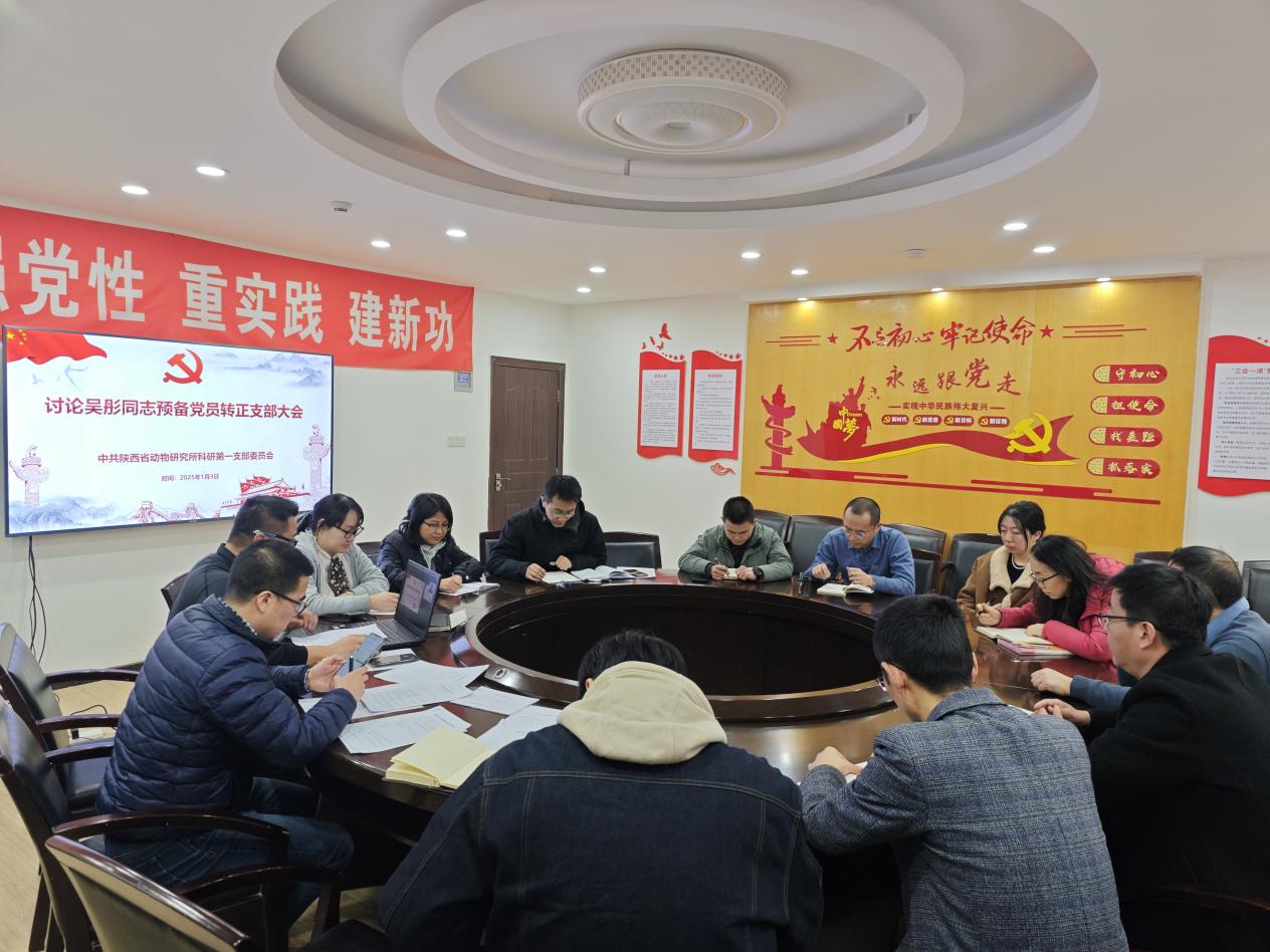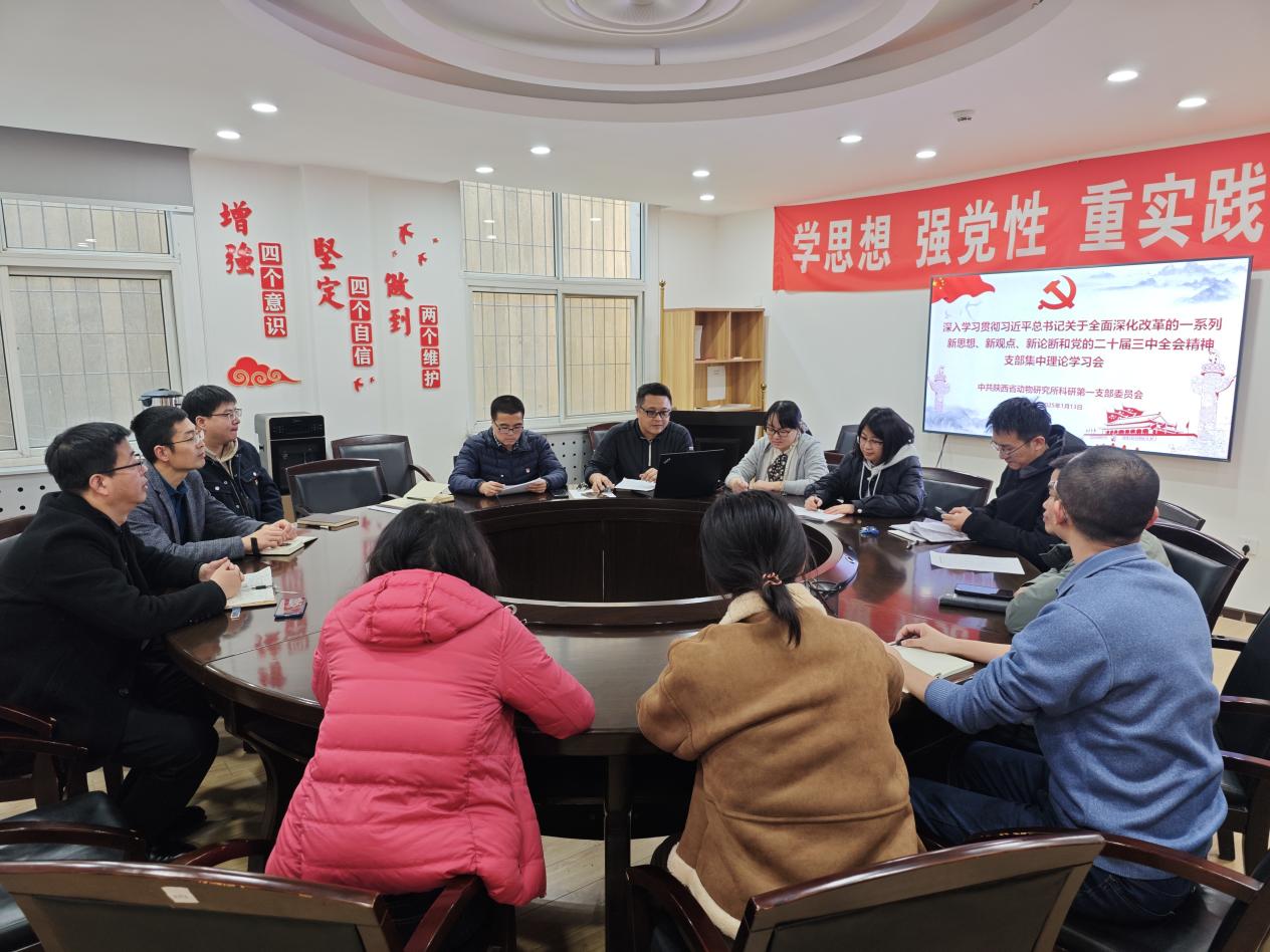2025年1月13日下午,动物所科研第一党支部召开深入学习贯彻习近平总书记关于全面深化改革的一系列新思想、新观点、新论断和党的二十届三中全会精神集中学习会,讨论吴彤同志预备党员转正问题,最后集中观看领悟习近平总书记2025年新年贺词。支部书记杨超主持会议,科研第一党支部全体党员同志参加,所党委委员、所长常罡代表所党委列席会议。