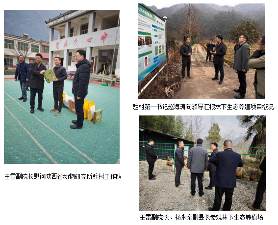 王雷亲切慰问了陕西省动物研究所驻茅坪村工作队和村民代表。王雷表示,驻村工作队要依托当地资源特点,强化科技提升养殖产业市场竞争力,增强乡村内生发展动力,确保帮扶项目可持续发展。同时王雷对陕西省动物研究所林下生态养殖项目的快速落地予以认可和表扬。并要求分省院各帮扶点发挥相互联动机制,开展针对性技术指导,推动产业规?;⒄?。
